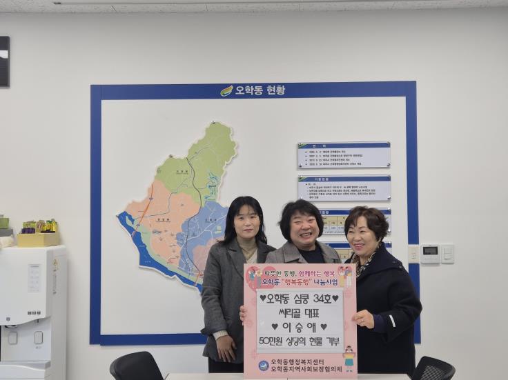 싸리골 이승애 대표는 오학동 지역사회보장협의체 위원으로 활동하면서, 지역 주민들의 복지 향상과 복지 사각지대 해소에 힘쓰고 있다. 이번 기부는 특히 겨울철을 맞아 경제적 어려움을 겪고 있는 주민들에게 큰 도움이 될 것으로 예상된다.