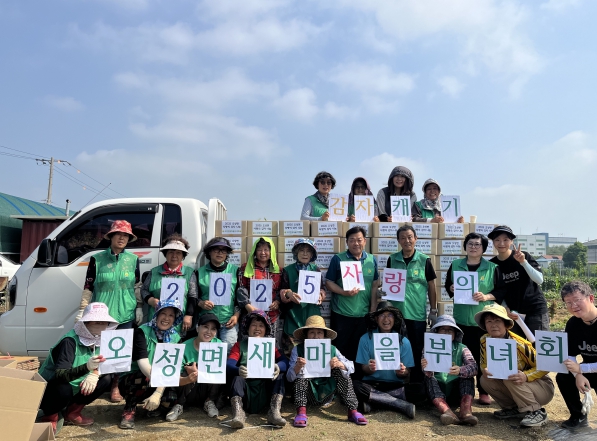 한편, 오성면 새마을 남녀지도자회는 새마을 협동 정신을 기반으로 매년 휴경지에서 재배한 작물을 판매 및 배급해 소외계층을 돕고, 폐비닐과 농약병 및 헌 옷 재활용 수익금을 통해 이웃사랑을 실천하고 있다.