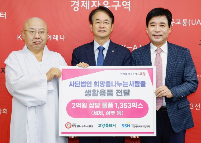 [무한뉴스=정승훈 기자] 고양특례시는 23일 (사)희망을 나누는 사람들로부터 2억 원 상당의 생활용품 1,353박스를 전달받았다고 밝혔다.