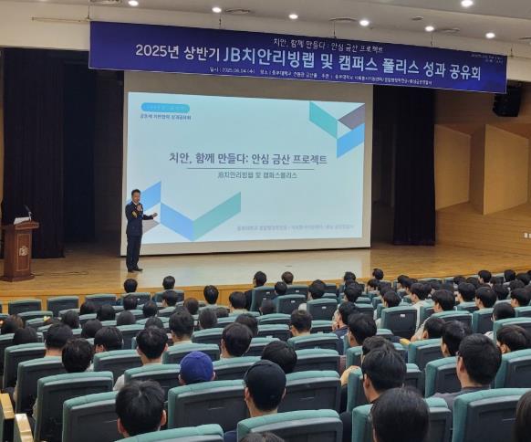 [무한뉴스=정민정 기자] 금산경찰서는 서장을 비롯한 경찰 5명과 중부대 교수진 5명 JB치안리빙랩 연구단 200명, 캠퍼스 폴리스 60명 총 270여명이 참석한 가운데 “2025년도 경·학 공동체 치안 협력 성과공유회”를 개최 했다고 밝혔다.