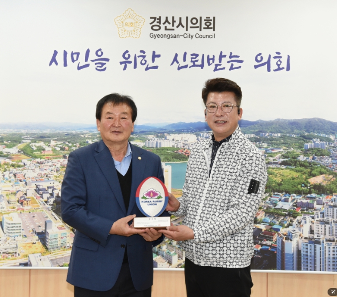 [무한뉴스=최진수 기자] 경산시의회 안문길 의장은 4월 17일 의장실에서 “2025 송화전국춘계럭비리그전” 개최를 위한 적극적인 지원과 럭비 발전에 기여한 공로를 인정받아 (사)대한럭비협회로부터 감사패를 받았다.