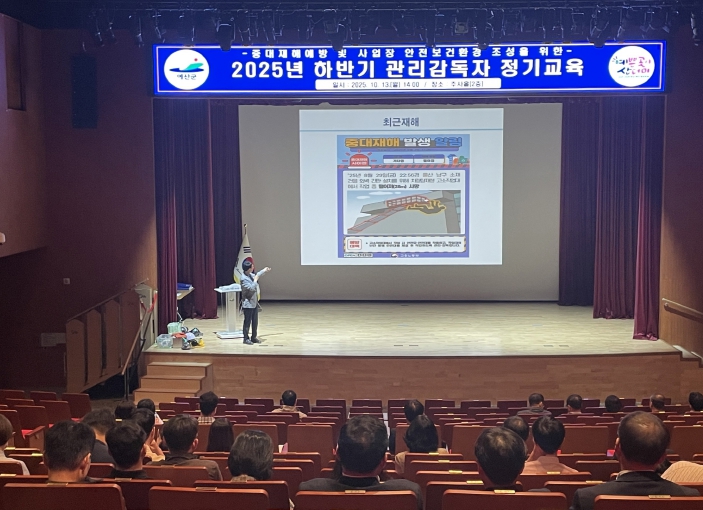 [무한뉴스=정민정 기자] 예산군은 지난 13일 군청 추사홀에서 중대재해 예방과 안전한 근로환경 조성을 위해 ‘2025년 하반기 관리감독자 집체교육’을 실시했다고 밝혔다.