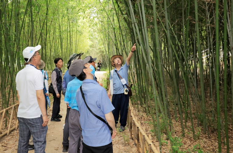 ▲ 달성투어 '다사-하빈' 코스 사진 1(올해 신설된 ‘달성투어 다사-하빈’ 코스. 참가자들이 다사읍 죽곡댓잎소리길을 둘러보고 있다.)