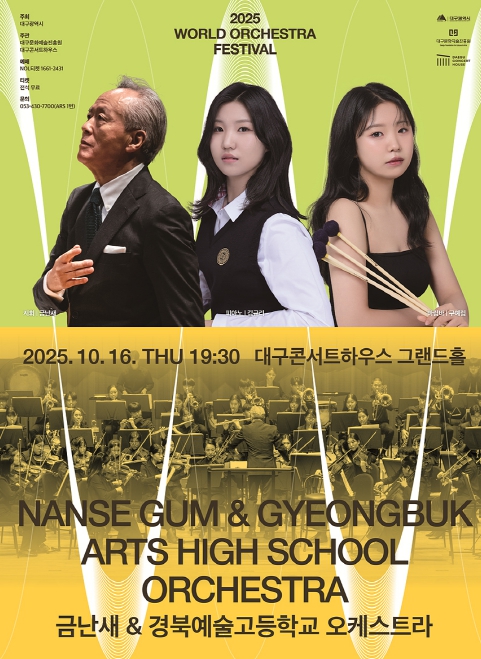[무한뉴스=최진수 기자] 대구콘서트하우스는 오는 10월 16일 오후 7시 30분, 그랜드홀에서 2025 월드오케스트라페스티벌의 일환으로 ‘금난새 · 경북예고오케스트라’ 공연을 선보인다.