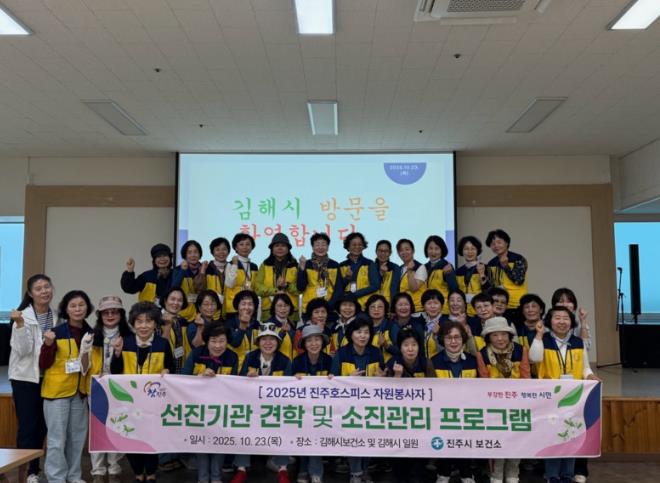 [무한뉴스=최진수 기자] 진주시 보건소는 호스피스 자원봉사자들의 돌봄 서비스 역량 강화와 사기진작을 위해 23일 김해시보건소 견학 및 소진관리 프로그램을 실시했다고 밝혔다.