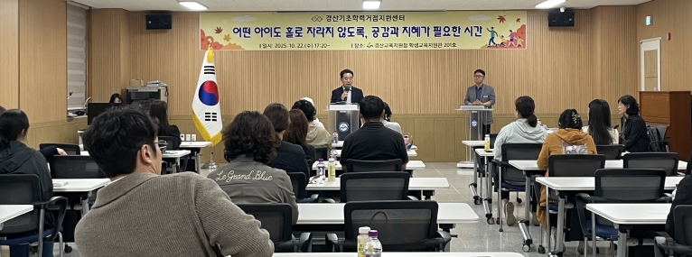 [무한뉴스=최진수 기자] 경산교육지원청 경산기초학력거점지원센터는 2025년 10월 22일(수) 경산교육지원청 학생교육지원관 2강당에서 경산·청도 지역 초등학교 학부모 80여 명을 대상으로 학부모 연수회를 열었다.