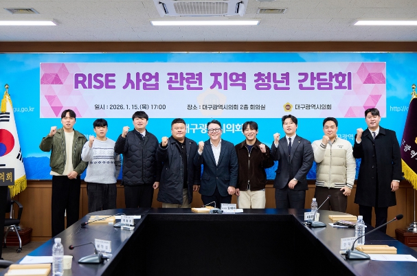 [무한뉴스=최진수 기자] 대구시의회 김태우 예산결산특별위원장(수성구5)은 1월 15일 시의회 2층 회의실에서 지역 청년 대표들과 함께 RISE(지역혁신중심 대학지원체계) 사업 관련 간담회를 개최했다.