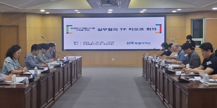 [무한뉴스=정민정 기자] 전북특별자치도는 20일 도청 중회의실에서 한국은행 전북본부, 호남지방통계청 전주사무소 등 9개 유관기관과 함께 『경제위기 대응 시스템 구축을 위한 실무협의 TF 킥오프 회의』를 개최했다.