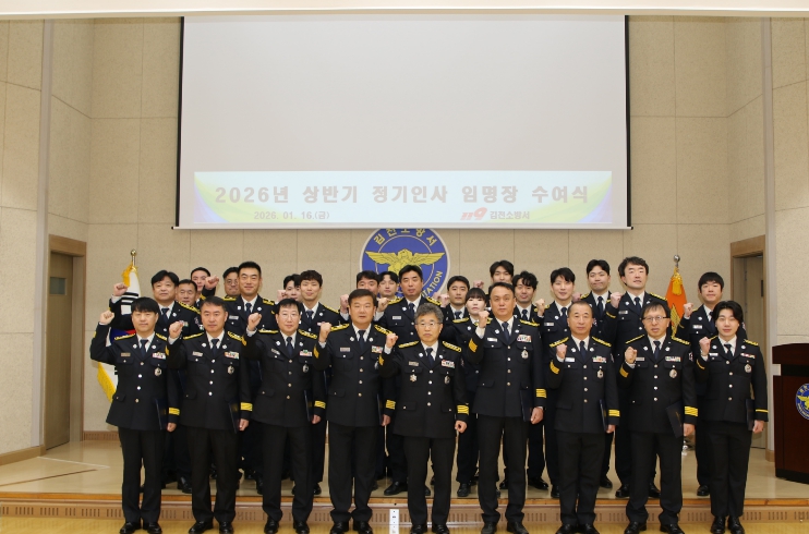 [무한뉴스=최진수 기자] 김천소방서(서장 송영환)는 1월 16일 오전 본서 2층 대회의실에서 2026년 1월 정기인사에 따른 임용식을 개최했다.