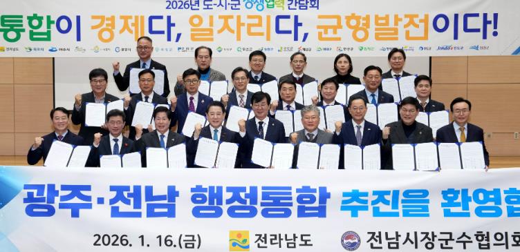 [무한뉴스=정민정 기자] 전라남도는 16일 전남도청 왕인실에서 ‘2026년 도-시군 상생협력 간담회’를 열어 지역 대도약을 위한 광주·전남 행정통합 추진에 도와 22개 시군이 공동 보조를 맞추기로 했다.
