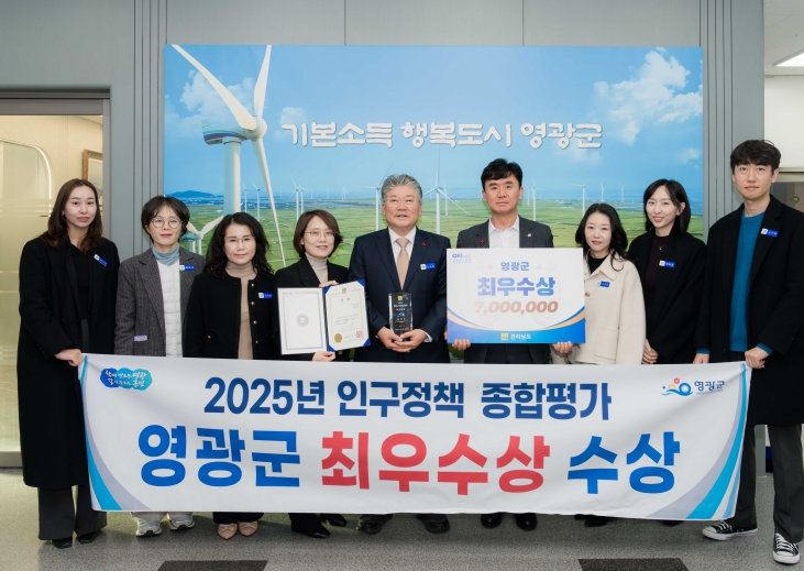[무한뉴스=정민정 기자] 영광군은 2025년 전라남도가 주관한 「전라남도 인구정책 우수 시‧군 평가」에서 ‘최우수상’을 수상했다고 밝혔다.