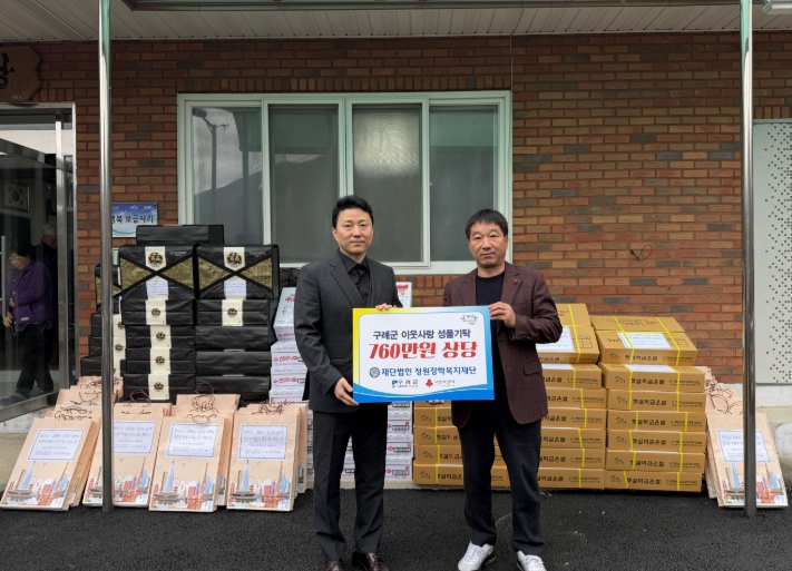 [무한뉴스=정민정 기자] 전남 구례군은 12월 19일, (재)정원장학복지재단(이사장 김용만)에서 토지면 신촌마을 주민과 관내 가정위탁세대를 위해 쌀(20kg), 돼지고기 세트, 생필품 세트, 라면 등 총 760만 원 상당의 물품을 전달했다고 밝혔다.