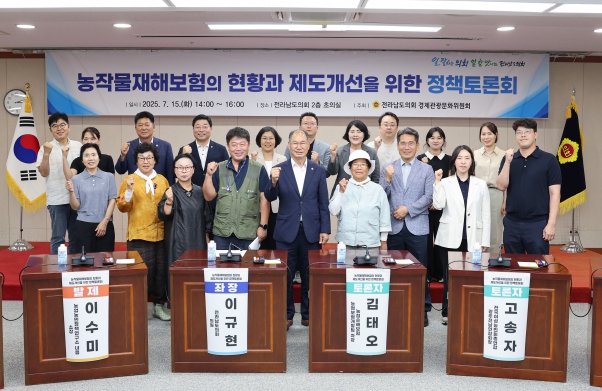 [무한뉴스=정민정 기자] 전남도의회 이규현 의원(더불어민주당, 담양2)은 지난 7월 15일 의회 초의실에서 빈번해진 이상기후를 대비한 전남농정의 대안을 모색하고자 ‘농작물 재해보험의 현황과 제도개선을 위한 정책토론회’를 개최했다.