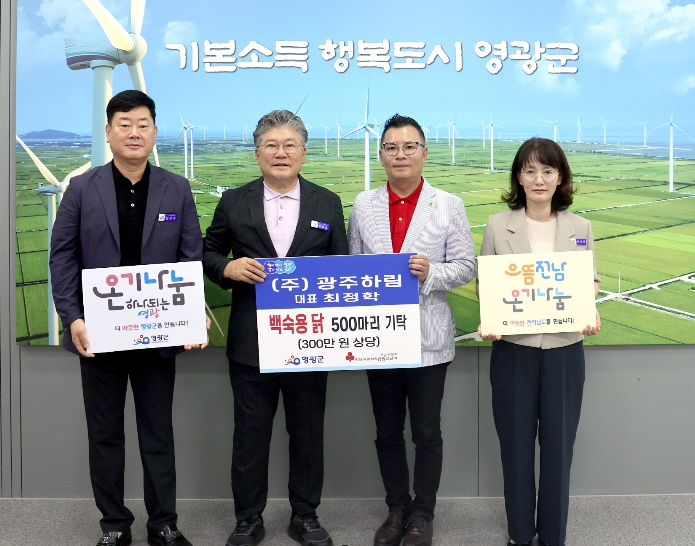 [무한뉴스=정민정 기자] 영광군은 지난 16일 (주)광주하림(대표 최정학)에서 무더위에 취약한 어르신들의 건강한 여름나기를 위한 백숙용 국내산 생닭 500마리(300만 원 상당) 기탁했다고 밝혔다.