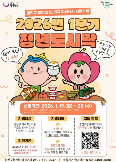 [무한뉴스=박노신 기자] 광진구(구청장 김경호)가 미취업 청년 1인가구의 간편한 식생활을 지원하기 위해 2026년 ‘청년도시락’ 지원 사업을 본격 추진한다.