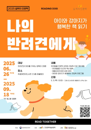 [무한뉴스=정승훈 기자] 고양특례시 주엽어린이도서관은 오는 6월 26일부터 9월 18일까지‘2025 길 위의 인문학’'나의 반려견에게: 아이와 강아지가 행복한 책 읽기'프로그램을 진행한다고 밝혔다.