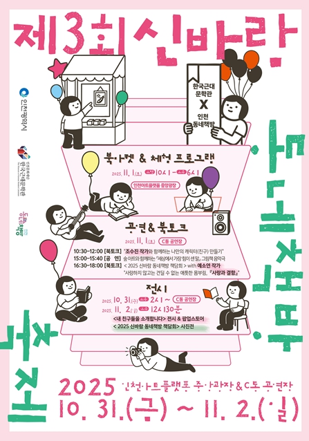 [무한뉴스=정승훈 기자] 인천문화재단 한국근대문학관은 오는 10월 31일부터 11월 2일까지 인천아트플랫폼 중앙광장과 C동 공연장에서 〈2025 신바람 동네책방 축제〉를 개최한다.