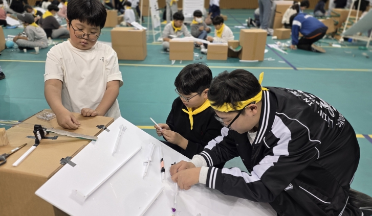 학생들은 대회에서 주어진 제한된 재료와 도구만을 활용해 릴레이 방식의 롤링볼(rolling ball) 구조물을 완성하며 창의적 설계와 실행력을 발휘했다.