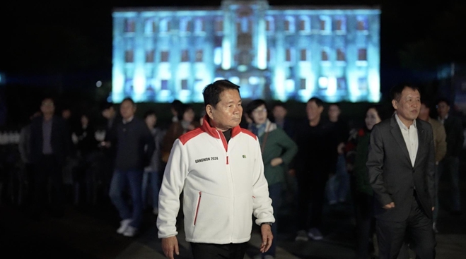| ▲ 강원특별자치도교육청 교육감 및 17개 교육지원청 교육장 철원 국가유산 미디어아트 현장 방문 |