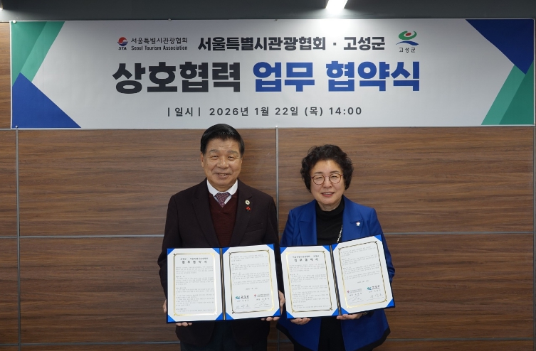[무한뉴스=최진수 기자] 경남 고성군은 1월 22일 서울특별시관광협회 회의실에서 서울특별시관광협회(회장 조태숙)와 지역 관광 활성화 및 관광산업 발전을 위한 업무협약(MOU)을 체결했다고 밝혔다.