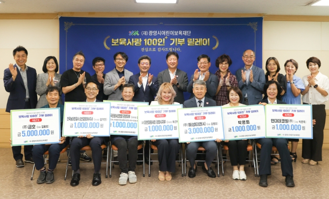 [무한뉴스=정민정 기자] (재)광양시어린이보육재단은 지난 7월 24일 광양시청 만남실에서 ‘보육사랑 100인+ 기부 릴레이’ 후원금 기탁식을 개최했다고 밝혔다.