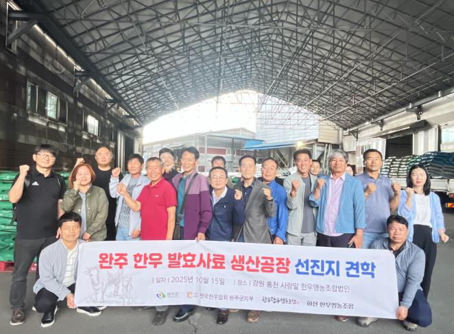 이번 견학은 완주 지역 축산단체와 관련 기관 관계자 등 총 20여 명이 함께한 가운데, 발효사료 생산공정과 운영 시스템을 직접 확인하며 향후 완주군 한우산업의 발전방향을 모색하기 위해 마련됐다.