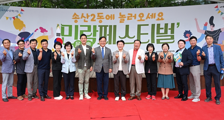 | ▲ 김동근 시장이 6월 7일 ‘송산2동에 놀러오세요, 민락페스티벌’에서 참석자들과 기념사진을 찍고 있다. |