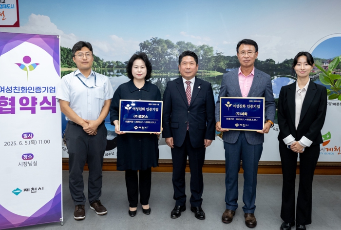 [무한뉴스=정민정 기자] 제천시는 지난 5일 여성친화기업으로 선정된 기업과 협약을 체결하고 인증 현판을 수여했다.