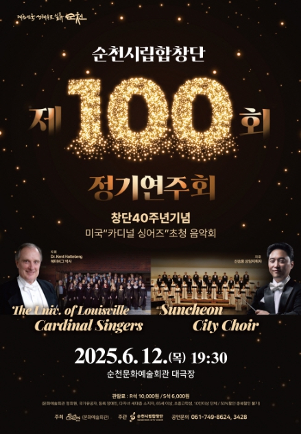 [무한뉴스=정민정 기자] 순천시는 오는 12일 목요일 저녁 7시 30분 순천문화예술회관 대극장에서 순천시립합창단 창단 40주년 기념 및 제100회 정기연주회 '카디널 싱어즈 초청음악회'를 개최한다고 밝혔다.