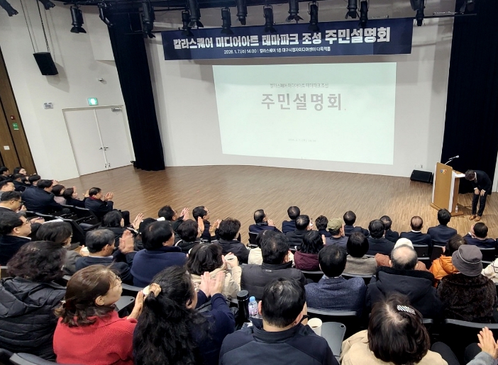 [무한뉴스=최진수 기자] 대구 수성구는 7일 칼라스퀘어(대구스타디움몰) 내 시청자미디어센터 다목적홀에서 ‘칼라스퀘어 미디어아트 테마파크 조성 주민설명회’를 개최했다.