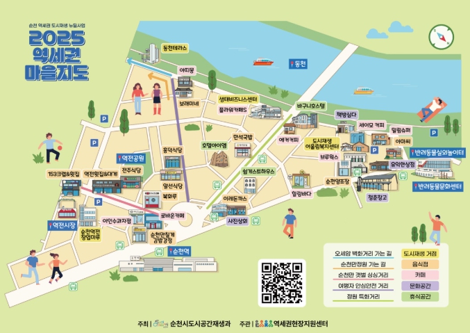 이번 프로그램은 순천 역세권 일대 주민과 상인 등 지역 구성원이 참여해▲역세권 관광명소 및 맛집 탐방 ▲도보 관광코스 기획 ▲마을지도 디자인 작업 등 다양한 활동을 펼친 주민참여형 프로그램으로, 참가자들이 직접 지역을 걷고, 의견을 나누며, 순천역 주변의 매력을 담은 마을지도를 공동 제작했다.