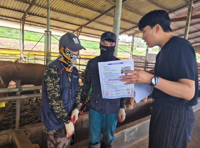 점검반은 농장별로 온열질환 예방 자율점검표를 배부, 작성하고 외국인 근로자들에게는 모국어로 제작된 ‘폭염 안전 5대 수칙’ 안내문과 얼음물을 제공했다.