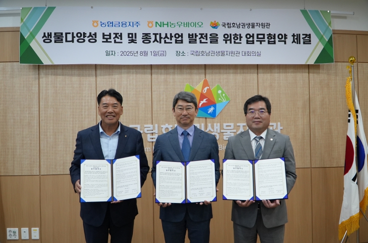 [무한뉴스=정민정 기자] 환경부 산하 국립호남권생물자원관은 8월 1일, NH농협금융지주, NH농우바이오와 함께 생물다양성 보전과 종자산업 발전을 위한 3자 업무협약(MOU)을 체결했다고 밝혔다.