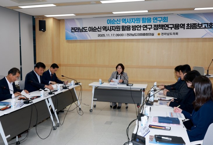 [무한뉴스=정민정 기자] 전라남도의회 이순신 역사자원 활용 연구회(대표의원 김화신)는 17일 도의회 중회의실에서 '전라남도 이순신 역사자원 활용 방안 연구'최종보고회를 개최했다.