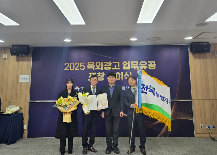 [무한뉴스=정민정 기자] 전북특별자치도가 행정안전부가 주관한 ‘2025년 옥외광고 정책 평가’에서 전국 광역자치단체 가운데 최고 등급인 ‘국무총리 표창’을 수상했다고 29일 밝혔다.