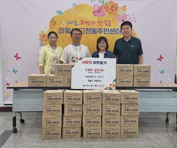노미경 고천동장은 “나눔이 필요한 시기에 꼭 필요한 후원을 해 주셔서 감사드린다”며 “정성과 사랑이 담긴 김치를 취약계층 30가구에 잘 전달하겠다”고 전했다.