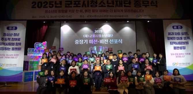 [무한뉴스=손성기 기자] 군포시청소년재단은 2025년 한 해를 마무리하고 새로운 도약을 다짐하기 위해 '2025년 미션·비전 선포식'을 개최했다.
