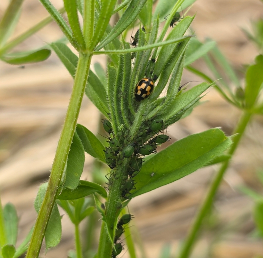 진딧물은 작물의 수액을 빨아 식물의 생장을 저해하고, 심하면 수확량 감소로 이어지는데, 무당벌레의 유충은 하루 최대 100마리 이상의 진딧물을 섭취할 수 있다.