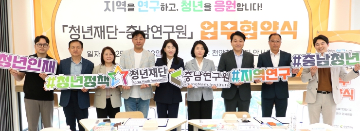 [무한뉴스=정민정 기자] 충남연구원은 23일 천안청년센터 안서이음에서 (재)청년재단과 지역 청년정책 공동연구와 삶의 질 향상을 도모하기 위한 업무협약을 체결했다.