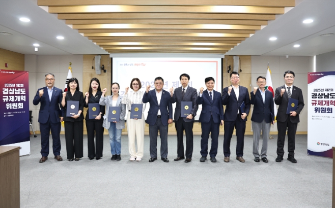 [무한뉴스=최진수 기자] 경상남도가 18일 도청 도정회의실에서 ‘2025년 제2회 경상남도 규제개혁위원회’를 개최하고, 민생규제 개선 우수과제 6건을 선정‧시상했다.