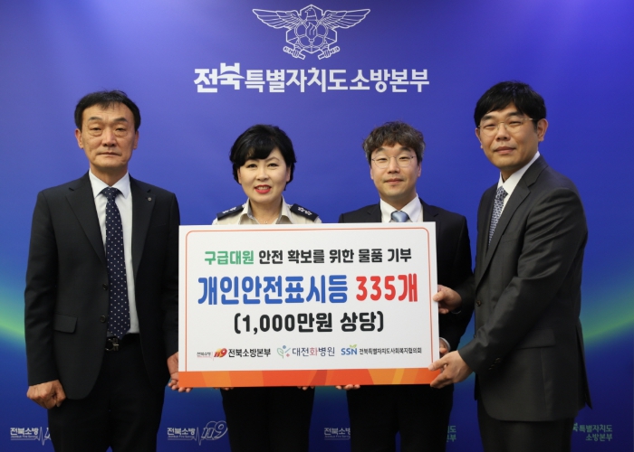 이번 전달식은 대전화병원(대표원장 신재준)이 전북사회복지협의회를 통해 개인안전표시등 335점(약 1천만 원 상당)을 기탁하며 이루어졌으며, 기탁된 물품은 도내 전 구급대에 배부돼 야간이나 저시정 상황에 서의 안전사고 예방에 적극 활용될 예정이다.
