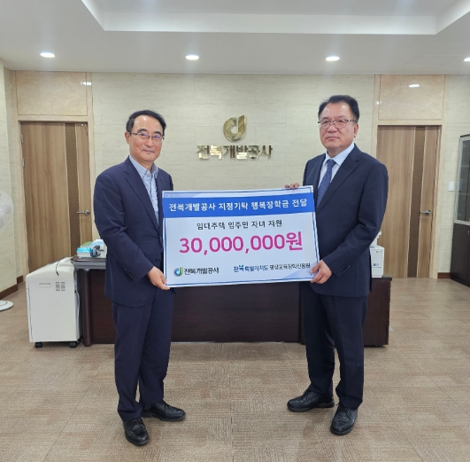 [무한뉴스=정민정 기자] 전북특별자치도평생교육장학진흥원은 5월 22일, 전북개발공사가 기탁한 3,000만원의 특별지정장학금을 바탕으로 전주 평화1동, 익산 송학동 등 전북개발공사 임대주택 입주민 자녀 총 44명(중고생 28명, 대학생 16명)을 선발해 장학금을 지원한다고 밝혔다.