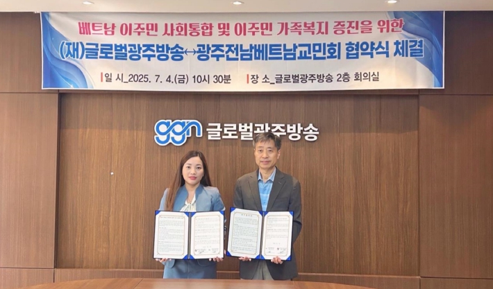 [무한뉴스=정민정 기자] (재)글로벌광주방송(GGN, 사장 윤도한)은 7월 4일 광주전남 베트남교민회와 함께 다문화 이해 증진과 사회 통합을 위한 업무협약을 체결했다.