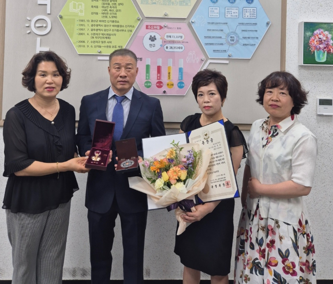 | ▲ 광산구가 7일 수완동행정복지센터에서 6·25참전 유공자인 고(故) 송기모 상병 유가족에게 화랑무공훈장과 증서를 전달했다. |