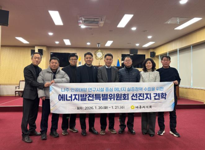[무한뉴스=양현명 기자] 나주시의회 에너지발전특별위원회는 인공태양 연구시설 유치 이후의 안정적인 운영 전략과 제도적 과제를 점검하기 위해 지난 1월 20일부터 21일까지 청주시 일원에서 선진지 견학을 실시했다.