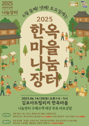 [무한뉴스=정승훈 기자] 김포시는 시민들과 함께하는 ‘사회적경제 나눔장터’를 김포한옥마을에서 6월 둘째 주와 넷째 주 토요일(6월 14일, 28일) 오후 1시부터 5시까지 개최한다.