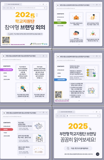 특히, 브랜딩 회의의 실질적인 의미와 현장 반영도를 높이기 위해, 부천 관내 모든 초‧중‧고등학교(특수학교 포함 등)에 카드뉴스 형태의 참여자 모집 안내 자료를 발송, 각급 학교 현장 전문가들의 자발적 참여를 적극 독려하고자 한다.