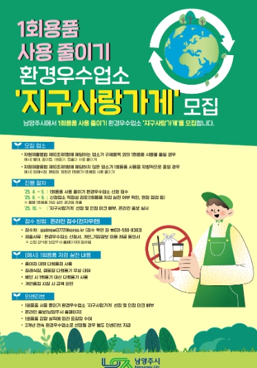 | ▲ 남양주시, 1회용품 줄이는 ‘지구사랑가게’ 모집 시작 |