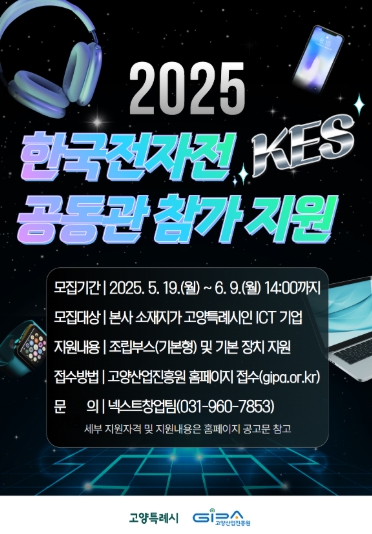 [무한뉴스=정승훈 기자] 고양산업진흥원이 ‘2025 한국전자전(KES)’ 진흥원 공동관에 참가할 고양시 기업을 추가 모집한다고 밝혔다.