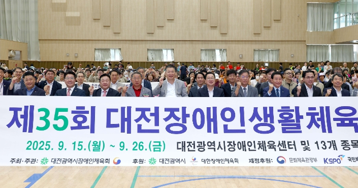 대전시장애인체육회에서 주최한 이날 대회는 생활체육경기 17종목, 어울림체육한마당 10종목으로 구성해 장애인 등 1,700여 명이 참여하는 대규모 체육대회로, 개회식은 지역을 대표하는 단체·기관장, 장애인 및 시민 등이 참석한 가운데 대전시장의 대회사를 시작으로 주요내빈 축사, 기념촬영 순으로 진행됐다.